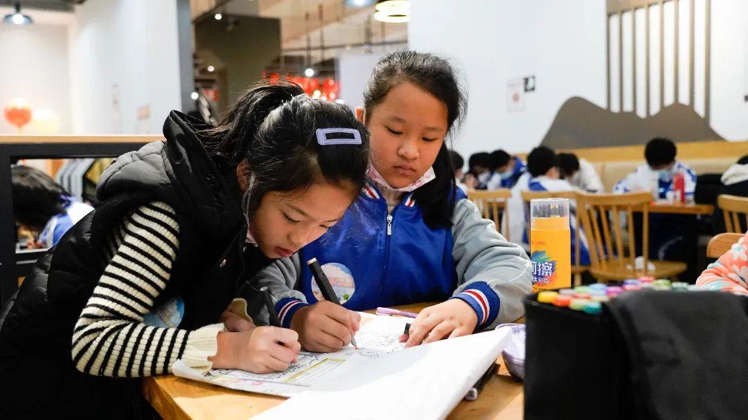 在决赛现场,“小主编”一进场就开始埋头创作。创作形式上,分别有单兵作战、双人组队,打样、描绘、上色、文字书写步步推进,铅笔、直尺、彩笔、中性笔、马克笔轮番上阵,一笔不苟地创作着自己的手抄报。