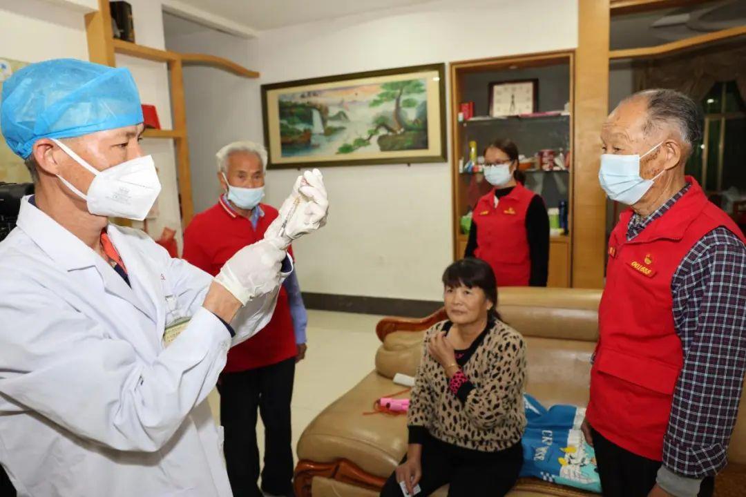 在红源村“两委”干部发愁如何加快老年人疫苗接种进度时,村民郑其绿说,“要不先带医护人员去我家吧?我们家老人还在经常问什么时候打第二针疫苗呢!”看到儿子带着医护人员上门,83岁的老党员郑智石很高兴,“本来想去卫生院打第二针的,没想到在家就能打上了。”说着郑智石便撸起袖子,配合医护人员测量血压。在经过医生健康评估后,老人家顺利接种第二针新冠疫苗,并且喊上老伴和左邻右舍的老人一起“苗苗苗”。其中,就包括他的老哥们——85岁的老党员郑咾。