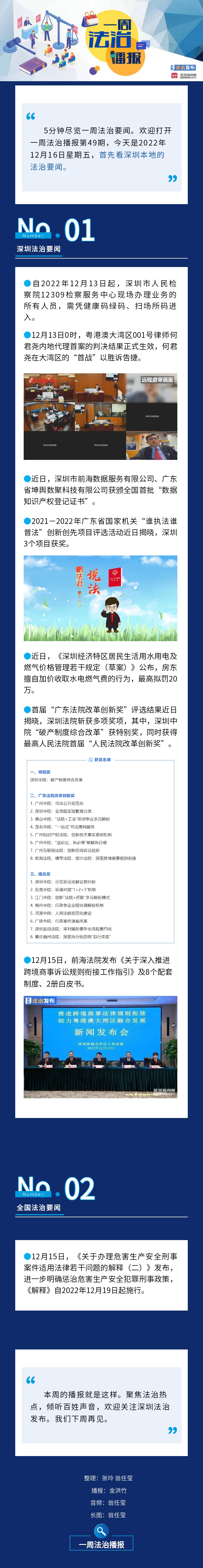 一周法治播报第49期: 深圳中院“破产制度综合改革”获创新特别奖