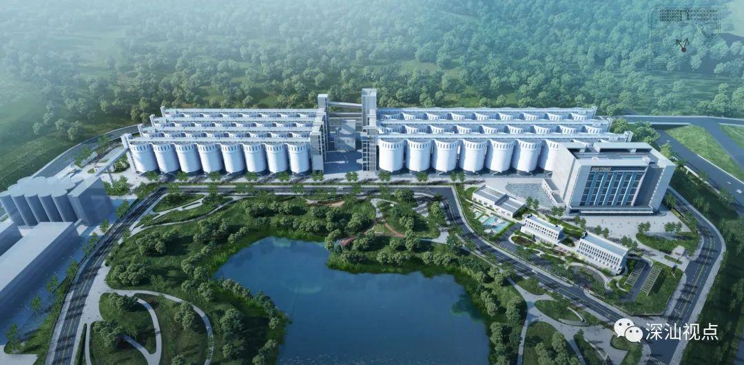 深汕粮食储备库项目分北库区(粮食仓储)和南库区(粮食中转)两个地块,总仓容75万吨,其中稻谷仓50万吨、小麦仓25万吨。该项目作为落实深圳市粮食安全“十四五”规划的重要工作任务,按照产业集聚、要素集中要求,大力推动现代粮食仓储设施建设,推动库内多业态产业集聚,具备粮油收储、中转、应急保供、检验检测等功能,形成辐射周边的现代粮食储备库。