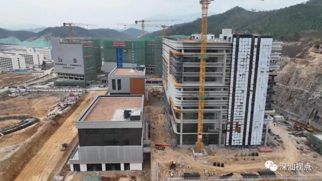 据介绍,深汕工业互联网制造业创新基地项目分三期建设开发,目前正在进行一期工程建设。从2021年12月份进场以来,目前一期2栋建筑面积约0.5万平方米的小型厂房已完成施工,一栋建筑面积约5万平方米的大型厂房正在外立面收尾,机电安装已全部完成;6栋宿舍楼已全部封顶,其中两栋外立面正在施工。