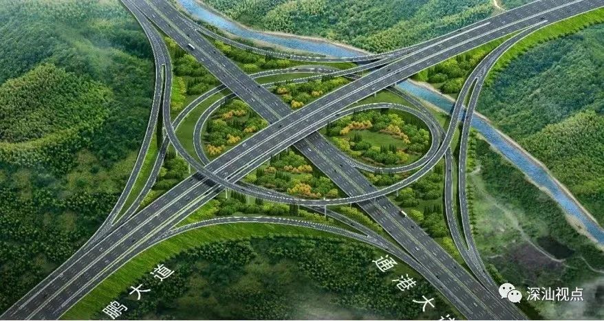 据悉,作为通港大道的重难点控制性工程,鹏兴立交投资额约5亿元,共设置3座主线桥和5座匝道桥,全线长约2250米、共计53跨,跨度26米至45米,根据设计行车需求,桥面宽8.8米至16.75米,为大型枢纽互通立交,建成后将成为集交通枢纽、自然景观为一体的地标性建筑。