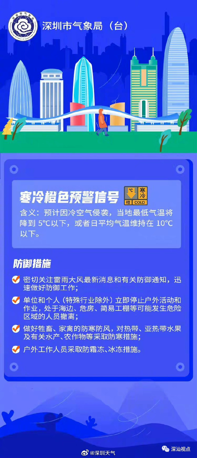 深圳全市陆地寒冷黄色预警生效