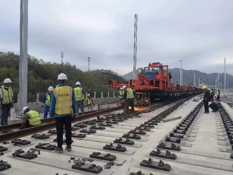 2月3日,在三凸岭隧道洞口,随着最后一根钢轨平稳铺设在无砟道床上,广汕高铁深汕段20.67公里完成主线铺轨,为全线通车运营、加快深汕融入“广州40分钟”生活圈奠定了坚实基础。