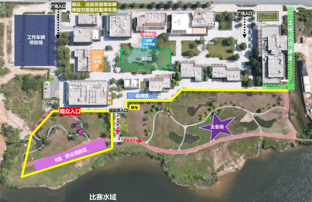 如自驾前往请停放在在赤河广场对面的临邦里临时公共停车场。(比赛期间,赤河广场停车区只对持工作通行证的车辆开放)