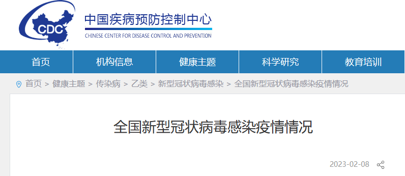 2月8日,中国疾病预防控制中心网站发布全国新型冠状病毒感染疫情情况。