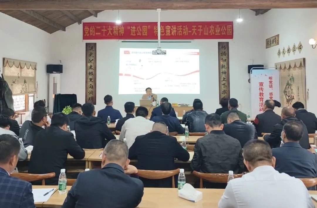 深圳市深汕特别合作区深入学习宣传贯彻党的二十大精神,奋力实现宣讲“六进”活动全覆盖,持续在全区范围内广泛掀起学习宣传贯彻热潮。近日,深汕特别合作区结合区情特色,在赤石镇天子山农业公园首次举行学习宣传贯彻党的二十大精神“进公园”特色宣讲活动。深圳市学习贯彻党的二十大精神百姓宣讲团成员、深圳职业技术学院马克思主义学院教授谭翀走出会议室,迈入大自然,为当地基层干部作专题宣讲,用群众喜闻乐见的互动方式和通俗易懂的语言宣讲党的二十大精神,让党的二十大精神“飞入寻常百姓家”。