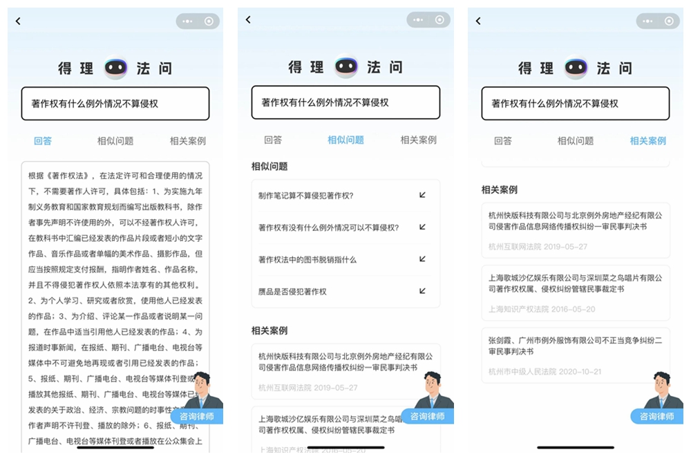 接下来我们让ChatGPT回答专业的法律咨询,并和法律版的ChatGPT——得理法问进行对比,看看结果如何。