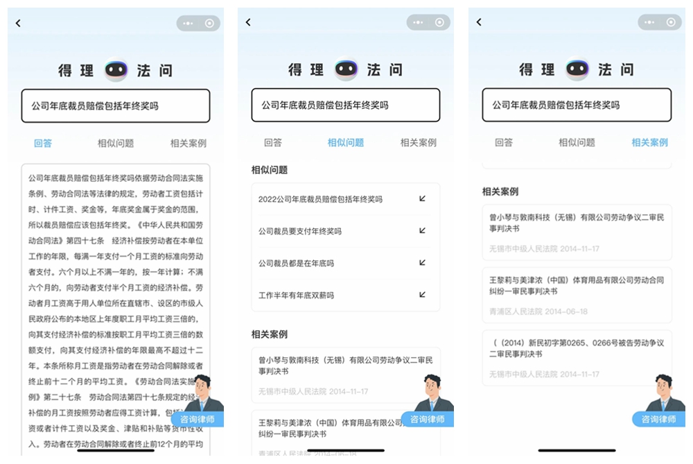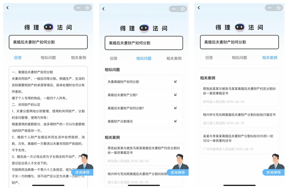贺倩明律师的分析是,目前看来,无论ChatGPT还是得理法问,并不会取代律师提供专业法律服务。两者都属于工具,更适合提供知识分享。而法律咨询客户通常是需要一个解决方案,包括客户沟通,庭上应变等,这些都需要强大的共情能力,而这正是人工智能目前所欠缺的。“此外,它们确实可以部分代替一些日常法律咨询,但是出庭、谈判、沟通这些是无法替代的。”