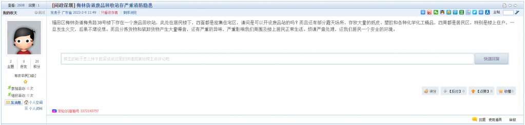 2、帖文《梅林街道废品回收站存严重消防隐患》