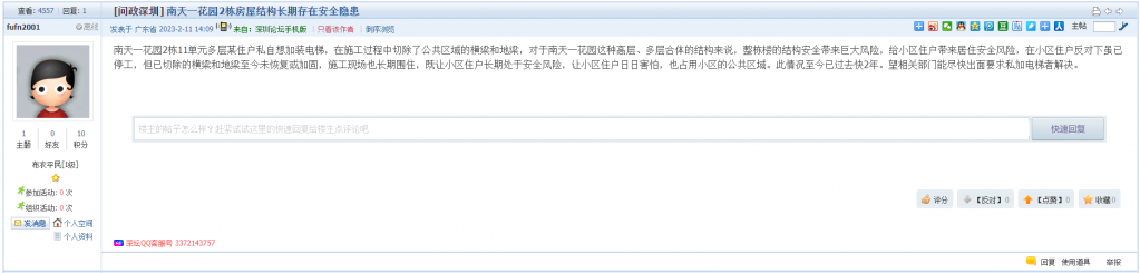 11、帖文《南天一花园2栋房屋结构长期存在安全隐患》