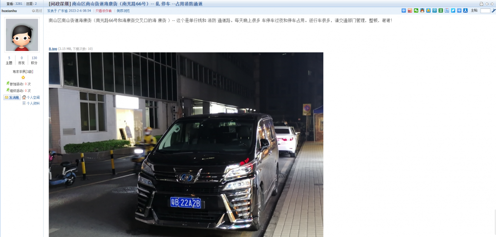 6、帖文《凤凰街机动车违停严重,侵害人行道安全@罗湖区交通运输局》