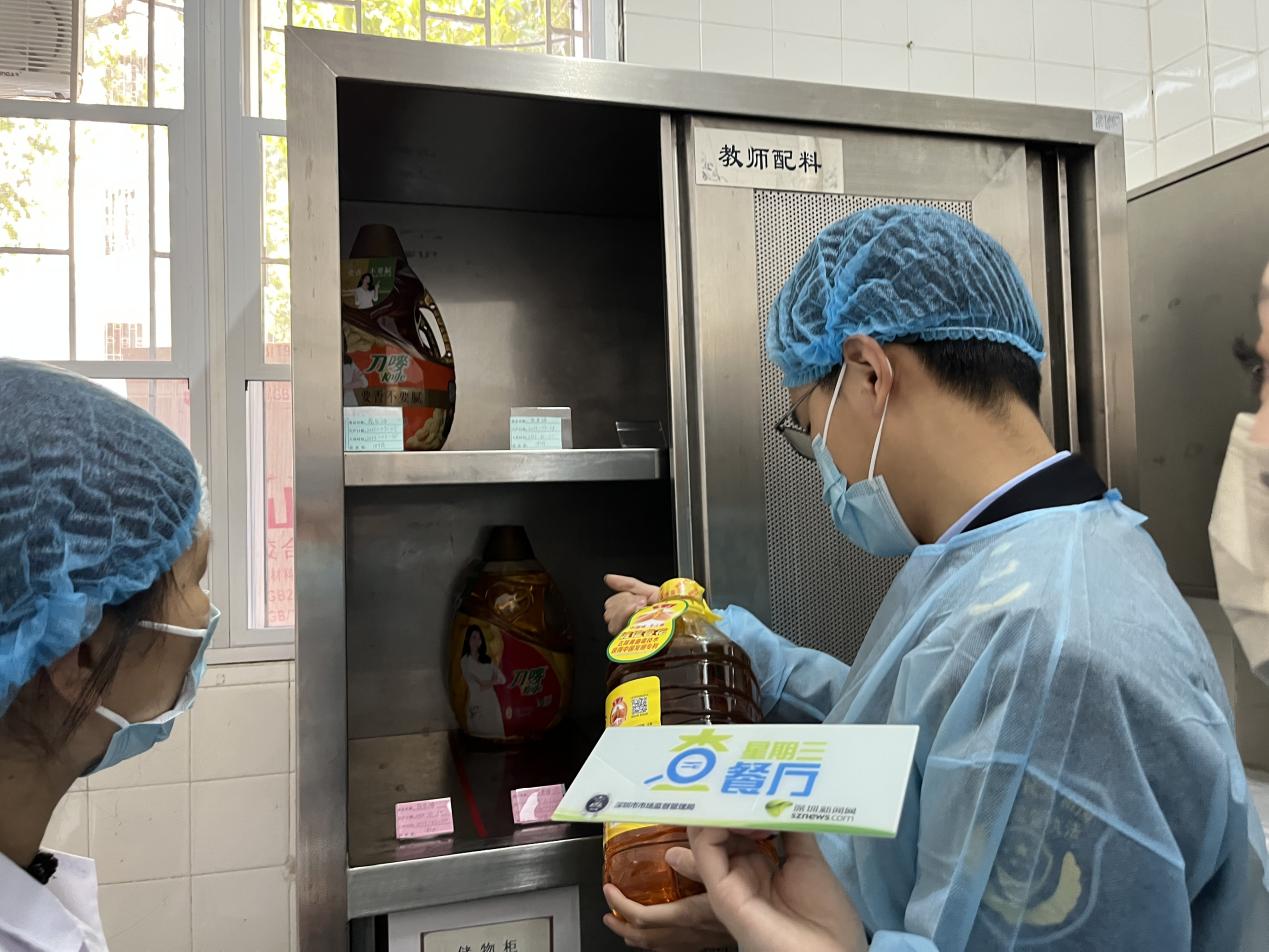 执法人员查看后厨食材标签