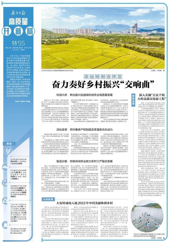 强国必先强农,农强方能国强。新的一年,深汕特别合作区将加快构建与汽车城相融通的产城乡融合发展的“三农”工作体系,扎实做好乡村发展、乡村建设、乡村治理重点工作,开创中国式现代化道路中独具深汕特色的田园都市新格局。