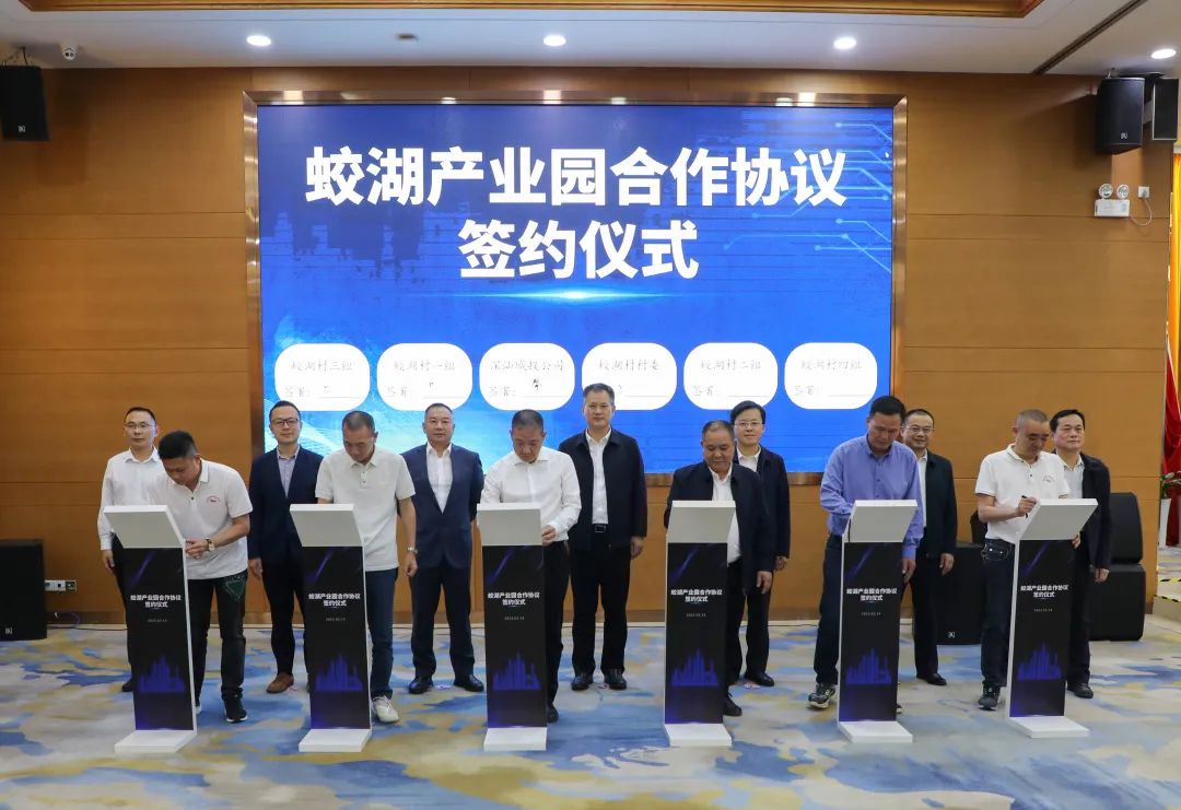 3月14日,深圳市深汕特别合作区蛟湖产业园合作协议签约仪式举行。深汕城投公司与鹅埠镇蛟湖村民小组、村委会签订合作协议,以“政府监管、企业运作、村集体合作”模式,推进蛟湖村留用地开发,建设产业园。这是深汕首次通过村企合作方式,探索将留用地资源打造为现代产业园。