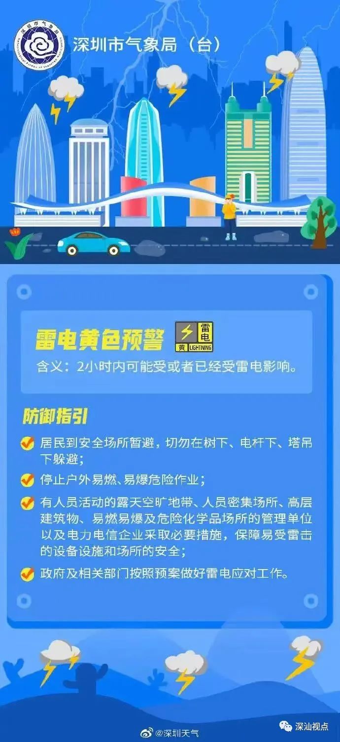 深圳市气象台3月25日13时10分在深汕海域、深汕特别合作区发布雷雨大风黄色预警,预计1-2小时内深汕将出现雷雨,并伴有7-8级最大阵风。请落实各项防风防雷电措施。