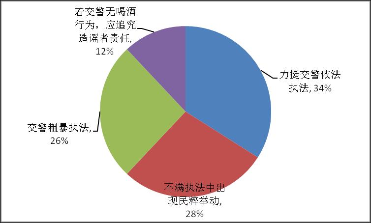 网民讨论观点集中于微博:一、部分网民力挺交警依法执法,称并无过当行为;二、部分网民不满执法中出现民粹举动,误导舆论损害法治;三、网民质疑交警说法,认为交警粗暴执法;四、少数网民建议若交警无喝酒行为,应追究造谣者责任。
