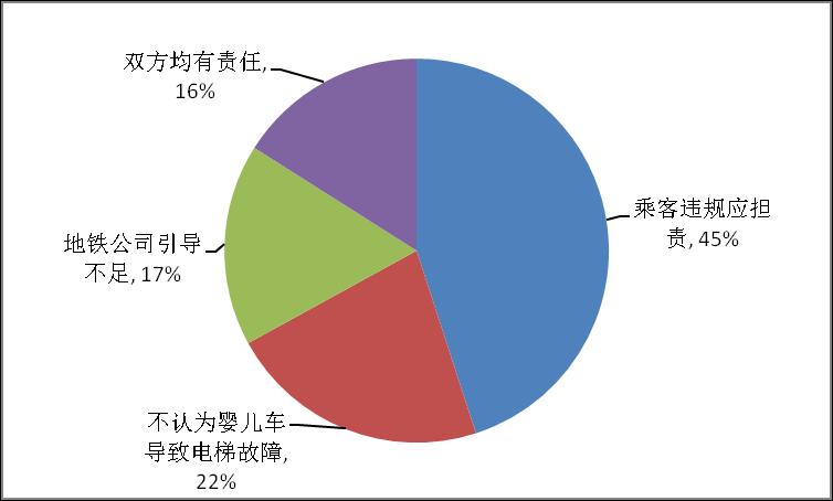 网民讨论观点集中于微博:一、部分网民认为乘客违规应担责;二、部分网民不认为婴儿车导致电梯故障;三、少数网民认为地铁公司引导不足;四、少数网民认为双方均有责任。