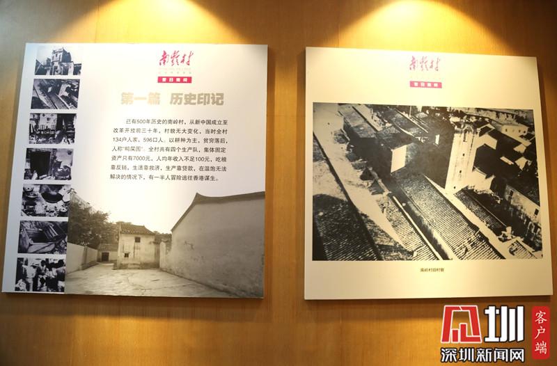“已有500年历史的南岭村,从新中国成立至改革开放前三十年,村貌并无大变化。当时全村134户人家,596口人,以耕种为主,贫穷落后,人称‘鸭屎围’。全村共有四个生产队,集体固定资产只有7000元,人均年收入不足100元,吃粮靠返销,生活靠救济,生产靠贷款,在温饱无法解决的情况下,有一半人冒险逃往香港谋生。”展厅里第一篇“历史印记”中的这段话记录了过去南岭村的真实村况。