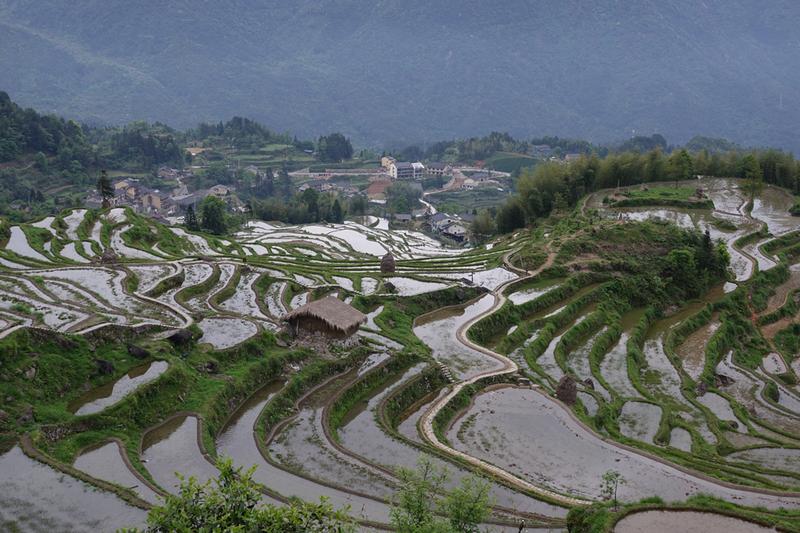 为解决粮食问题,先民们在高低起落的坡地上,开垦出一小块一小块、一小片一小片的田地。李仁奇 摄
