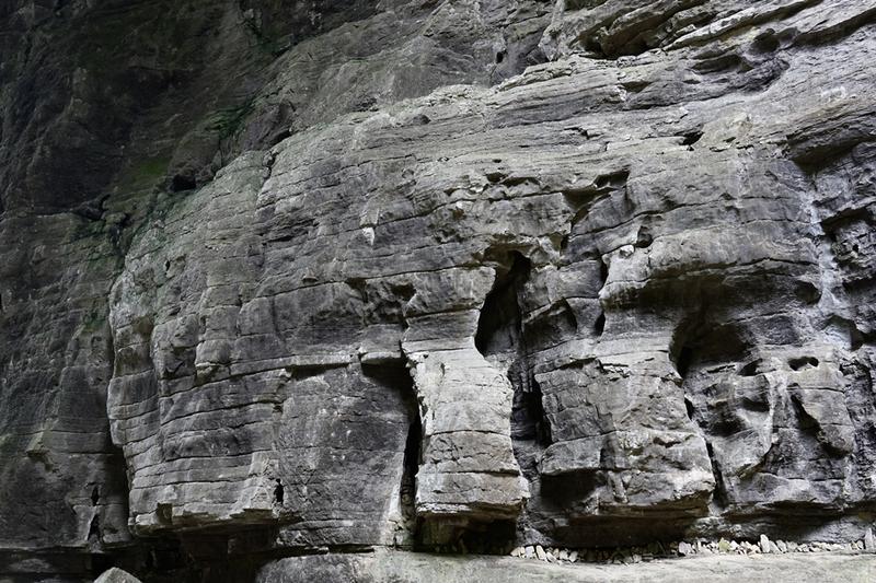 黑龙桥为羊水河峡谷上位置最下游的天生桥,因其拱洞幽深暗黑,似有一条黑龙蜿蜒于洞顶而得名。桥厚107m,拱孔跨度16-49m,桥面宽达193m,为三桥中宽度最大者。李仁奇 摄