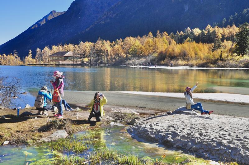 景区内红叶、杜鹃花种类繁多,森林原始、瀑布飞挂、冰川奇特,四季皆有看点,尤以深秋时节的绚丽多姿闻名,被比作四姑娘山的美丽背影。李仁奇 摄