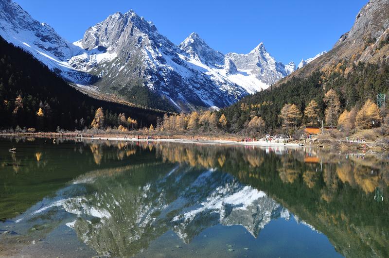 四姑娘山俏丽的身影倒映在天际湖内,此等美景入诗入画。李仁奇 摄