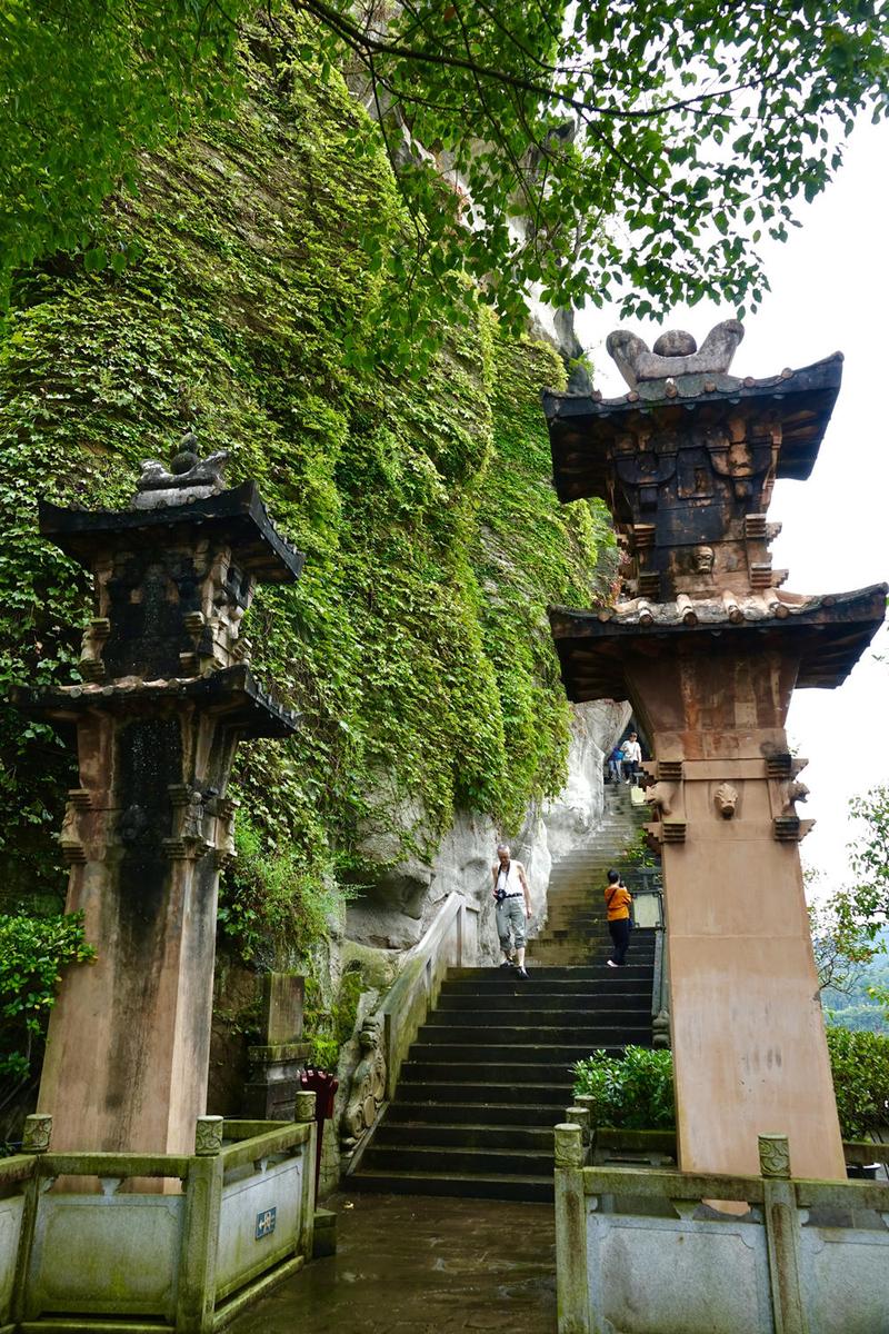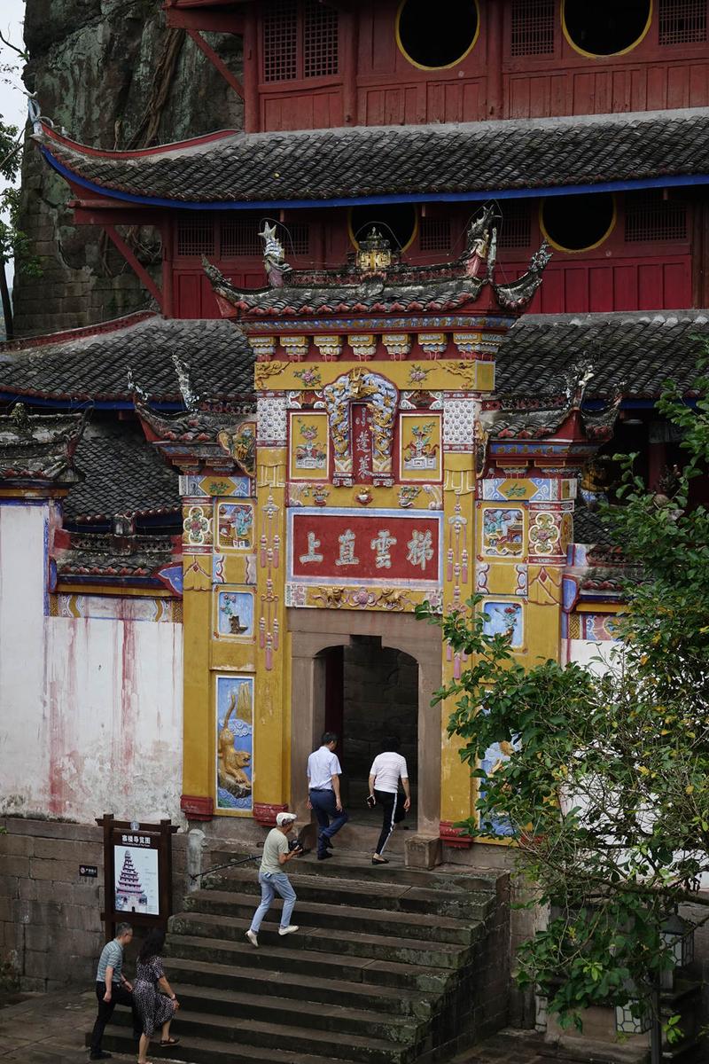 全寨共分两部分,山下9层和山上3层错落有致,从远处眺望12层楼重檐高耸,浑然一体,宏伟壮观,共高56米,阁内每层石壁上均有题咏。李仁奇 摄