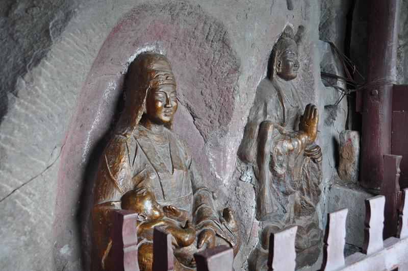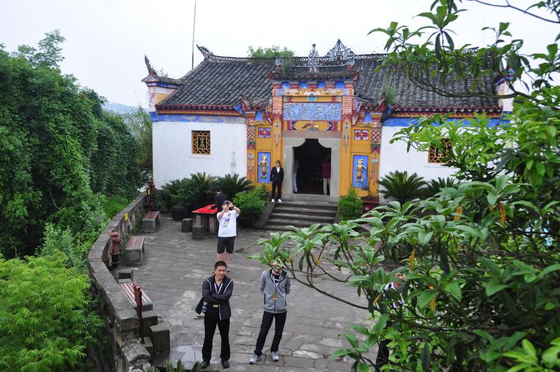 山顶有古刹天子殿,创建于康熙、乾隆年间,是此寨最高点。正殿墙壁有女娲补天故事的壁画,画下方,有一遗石,似石宝寨。李仁奇 摄
