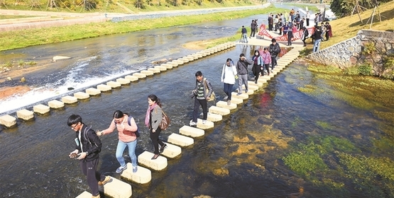 河岸整齐,绿草茵茵,水清见底……如今,行走在龙岗河,人们不禁这样感叹:一片水域,就是一道亮丽的风景线。
