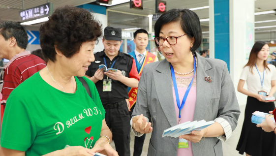 5月13日下午,深圳市司法局副局长蒋小文带队走进人潮涌动的世界之窗地铁站和华侨城广场,开展了一场别开生面的“快闪”普法活动,为过往市民发放“扫黑除恶”普法口袋书并答疑解惑。