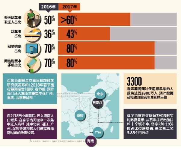 报告显示,2018年春运总体迁徙趋势呈现出三波小高峰。