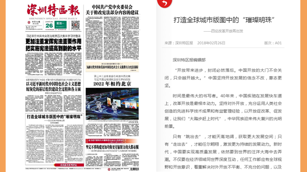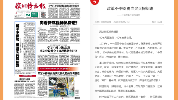 经济特区建设是一项开创性的事业,深圳改革开放30多年的发展实践,为五大发展理念写下精彩注脚、作出有力印证。特区之特,因思想解放领时代风骚,因真抓实干而成就斐然。[详细]