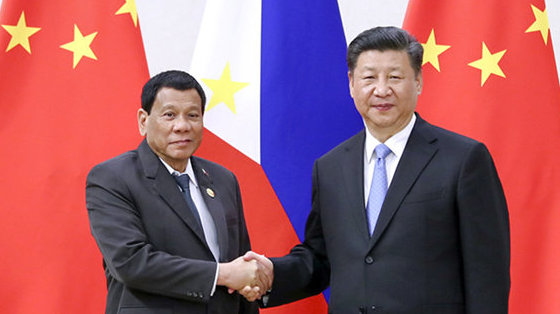 10日,国家主席习近平在海南省博鳌国宾馆会见菲律宾总统杜特尔特。习近平强调,中国对菲律宾睦邻友好政策是坚定的,支持菲律宾发展的意愿是真诚的。