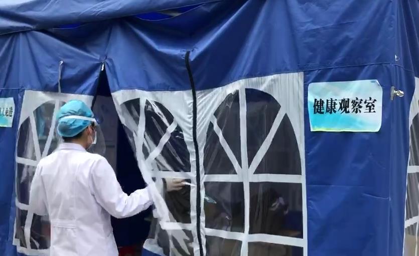 宝安中学校门口配有健康观察室