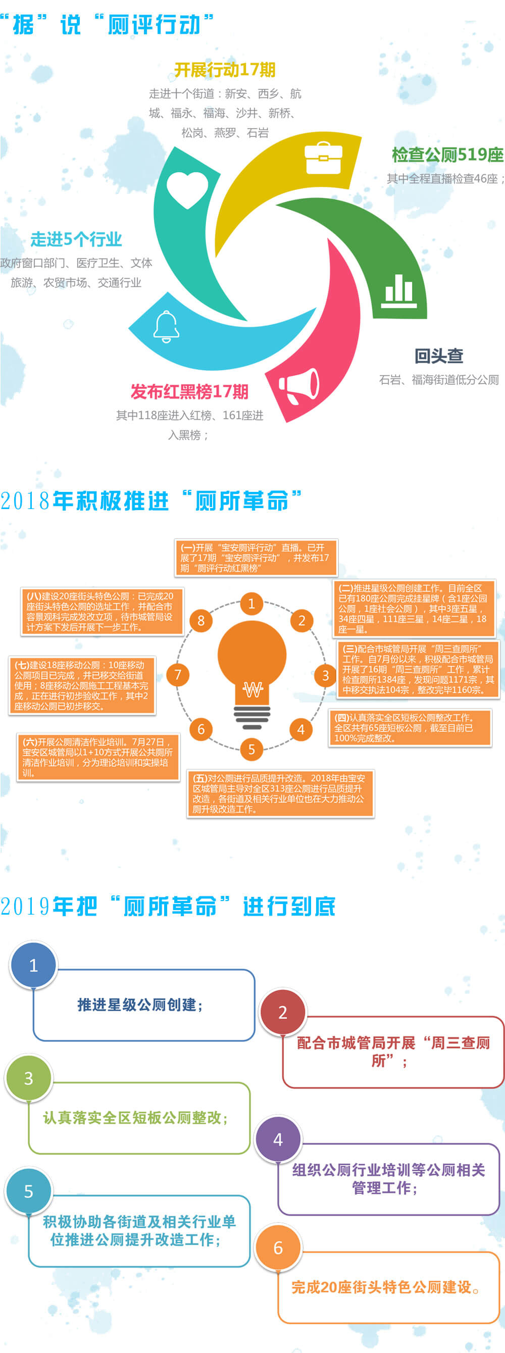 为落实习近平总书记关于“厕所革命”的重要指示,宝安区城管局2018年开展了形式多样的“厕所革命”。“宝安厕评行动”是全市首创的“厕所革命”品牌项目之一,取得了实实在在的效果,为市民提供了更佳的如厕环境。 [详细]