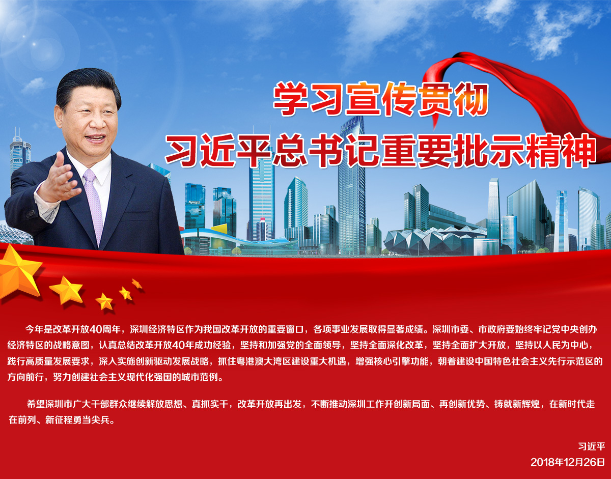 习近平总书记在2018年12月26日对深圳工作作出的重要批示中,明确要求深圳“始终牢记党中央创办经济特区的战略意图”。[详细]