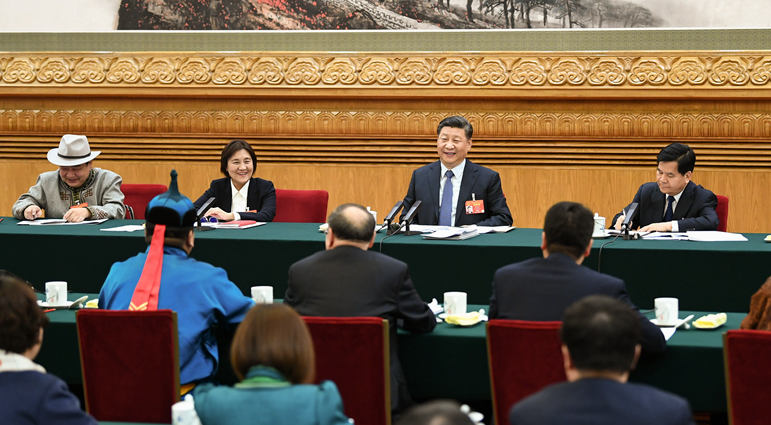 中共中央总书记、国家主席、中央军委主席习近平5日下午参加他所在的十三届全国人大二次会议内蒙古代表团审议。