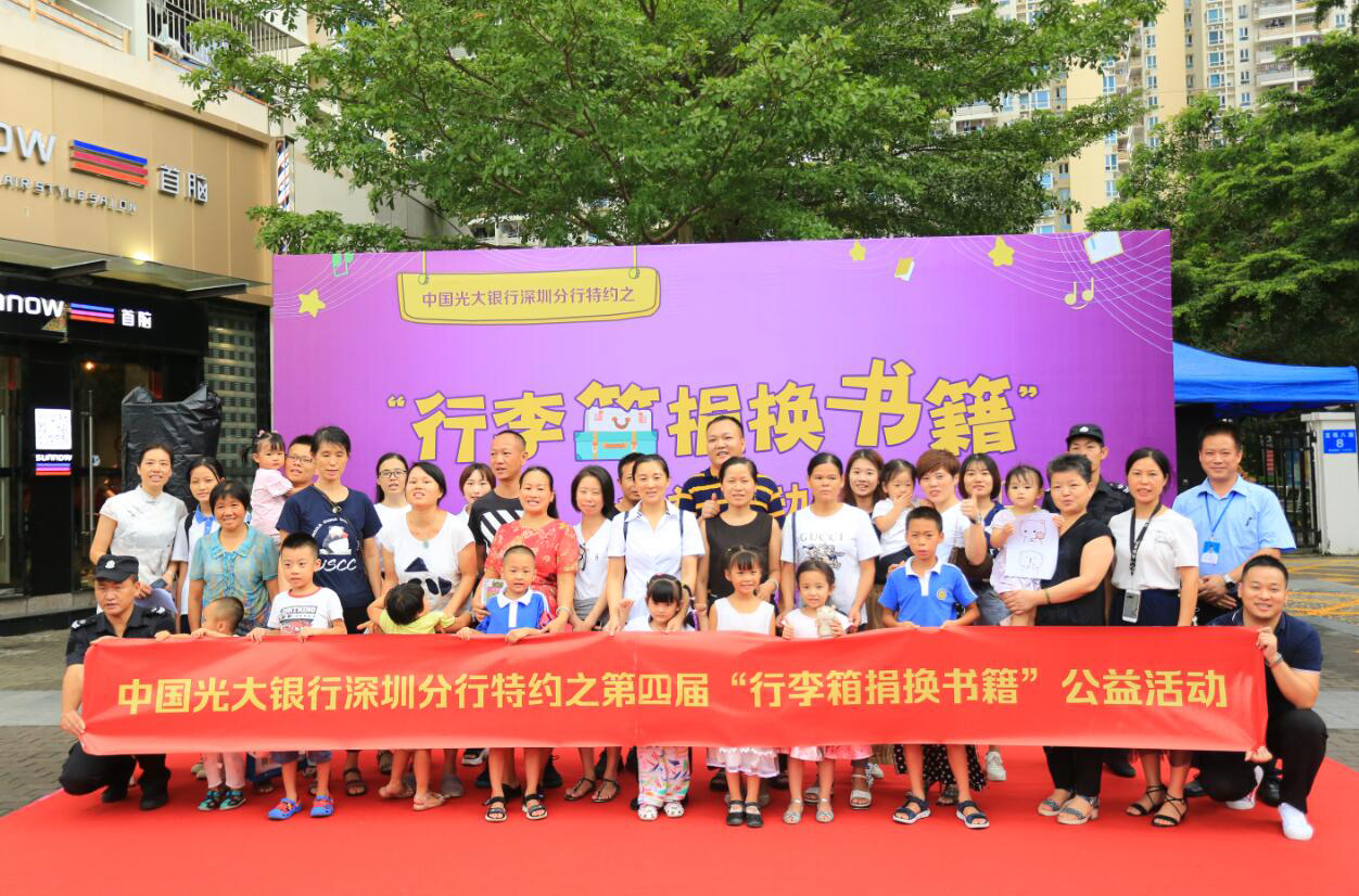 “行李箱捐换书籍”公益活动由深圳新闻网和中国光大银行深圳分行共同发起,呼吁更多热爱读书的深圳市民参与到活动中来,通过交换、分享、捐赠书籍将“爱心”传递下去,让更多山区孩子也能通过书本看到外面的世界。希望这种文化公益活动,能够将书籍的魅力传递给每一个人,也将光大银行贴心而便捷的服务带给每一个人。