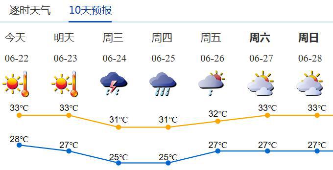 本周中期将迎来较明显的降水,天气再趋闷热,期间正值端午假期,各位市民出行要注意。