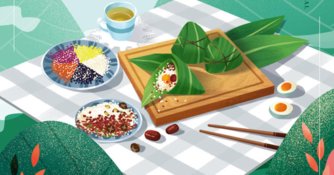 时至今日,粽子的花样千变万化:竹筒粽、箬叶粽、五彩粽、冰皮粽...小巧而精致。
