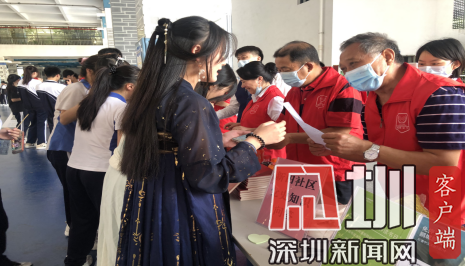 新田社区联合深圳市第一职业技术学校结合红马甲行走社区活动和第三届游园会,把党史学习教育热潮带进校园。