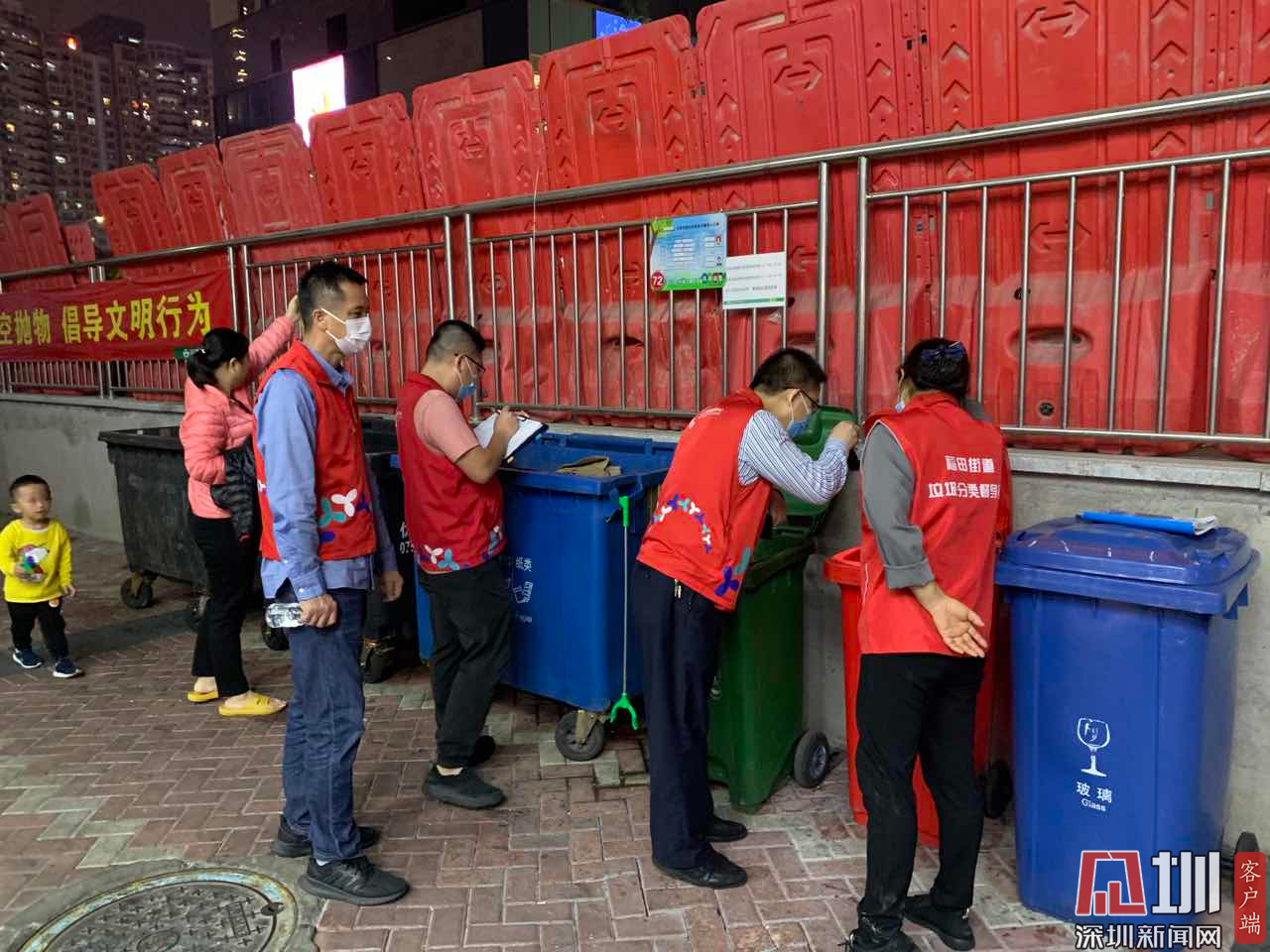 岗厦社区纪委组成督查小组夜间深入小区和城中村现场对垃圾分类督导工作进行严格检查
