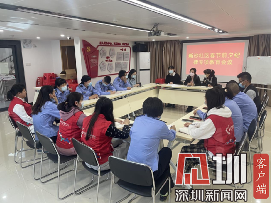 2月1日下午,沙头街道新沙社区纪委组织召开新沙社区2021年春节前夕纪律专项教育会。