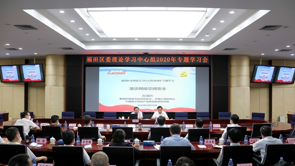 8月19日,福田区召开区委理论学习中心组(扩大)学习会,邀请中国工程院院士、信息网络与信息安全专家方滨兴开展“漫谈网络空间安全”专题授课。