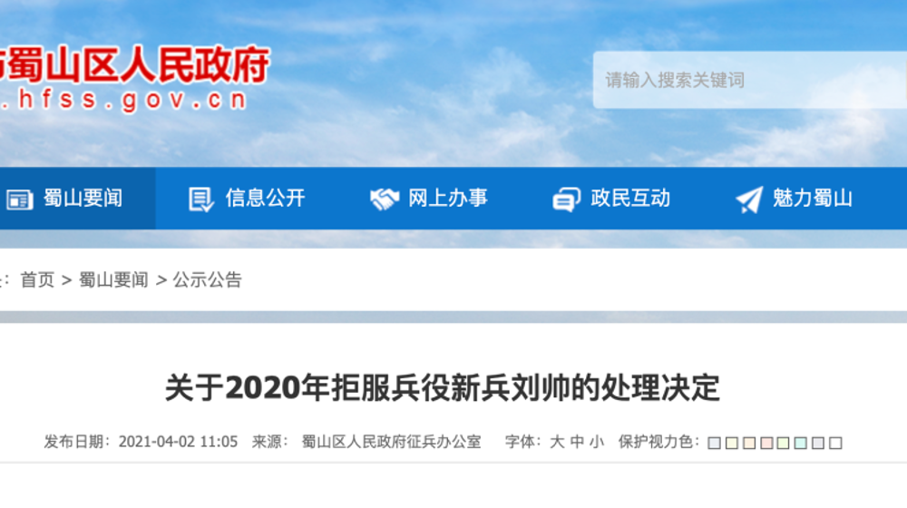 2021-04-06安徽农大男生拒服兵役被罚:两年内不得复学、罚款4万余元