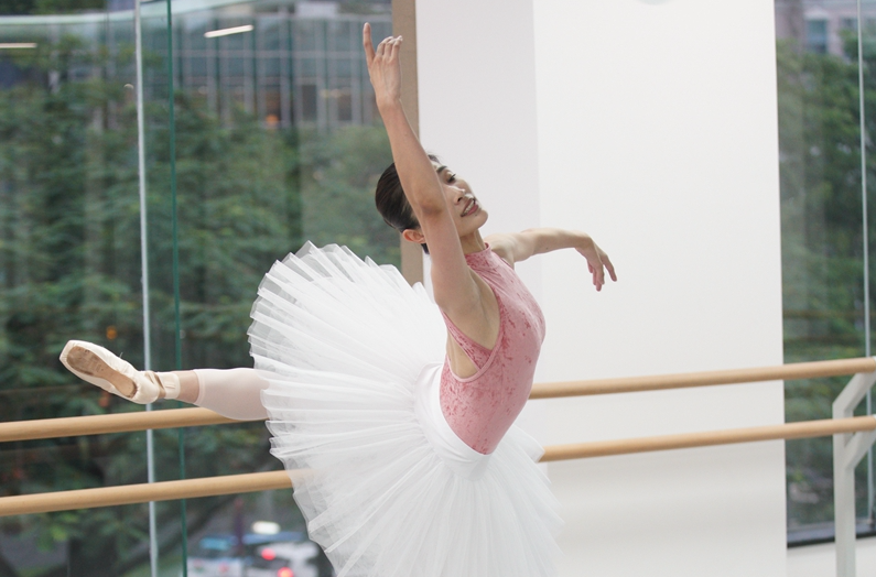 排练厅的落地窗毫无保留地将阳光引入,杨静娴足尖轻点,踩着芭蕾舞剧《堂·吉诃德》杜西尼亚片段的节奏,旋转、跳跃,身姿轻盈,舞姿翩跹。