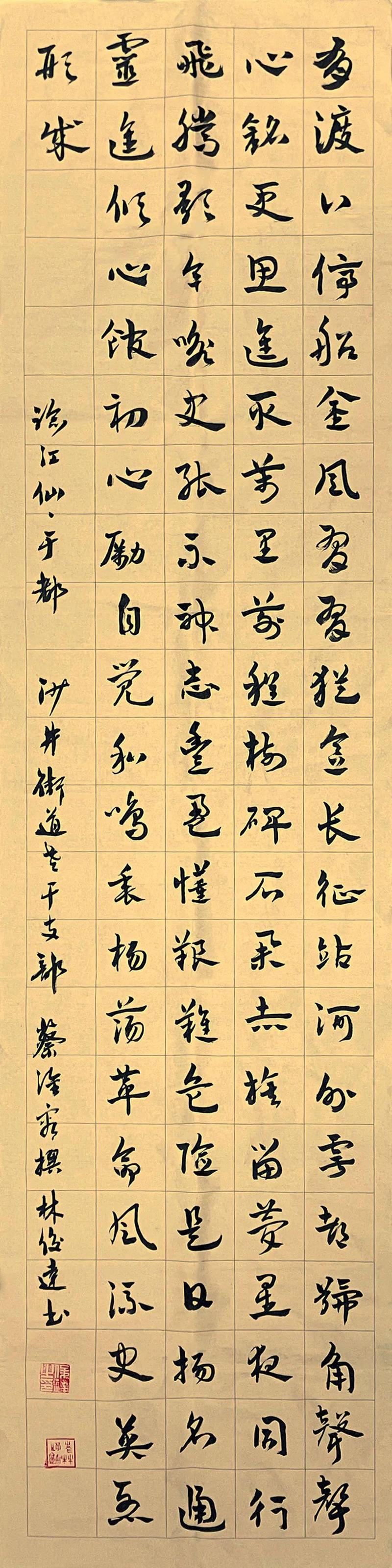 有渡口停船,金风习习,犹念长征。站河外,于都号角声声。心铭。更思进取,万里前程。树碑石,举赤旗留梦,星夜同行。飞腾。歌今咏史,能不神志丰盈?懂艰难危险,是日扬名。通灵。进倾心馆,初心励,自觉和鸣。垂杨荡,革命风流史,英烈形成。