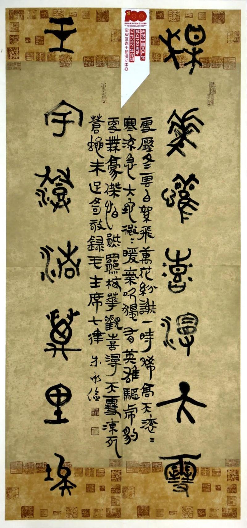 高山仰首,大海扬波,江河共鸣,大地同庆。为庆祝中国共产党建党100周年,讴歌党的光辉历程和丰功伟绩,继承和发扬党的优良传统和作风,引导老干部不忘初心、砥砺前行。宝安区委组织部主办、区老干中心承办了本次“致敬百年 同心向党——宝安区老干部献礼建党百年诗书画摄影作品展览”。