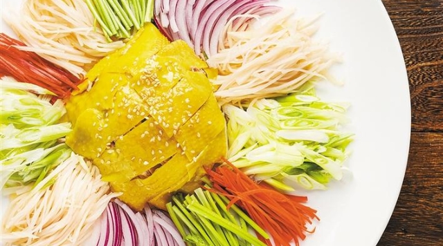 深圳君悦酒店的主席楼一道“风生水起捞葵花鸡”,不但寓意十足而且鲜味浓郁。